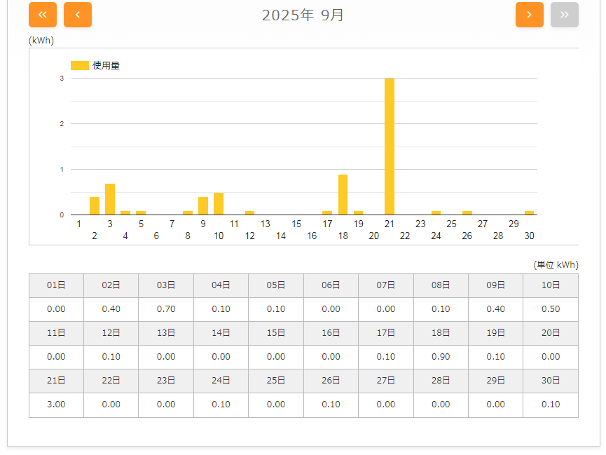 今月は悪天候の日が多かったため、夜間の買電が発生してしまい電気料金を数十円に抑えることができませんでした